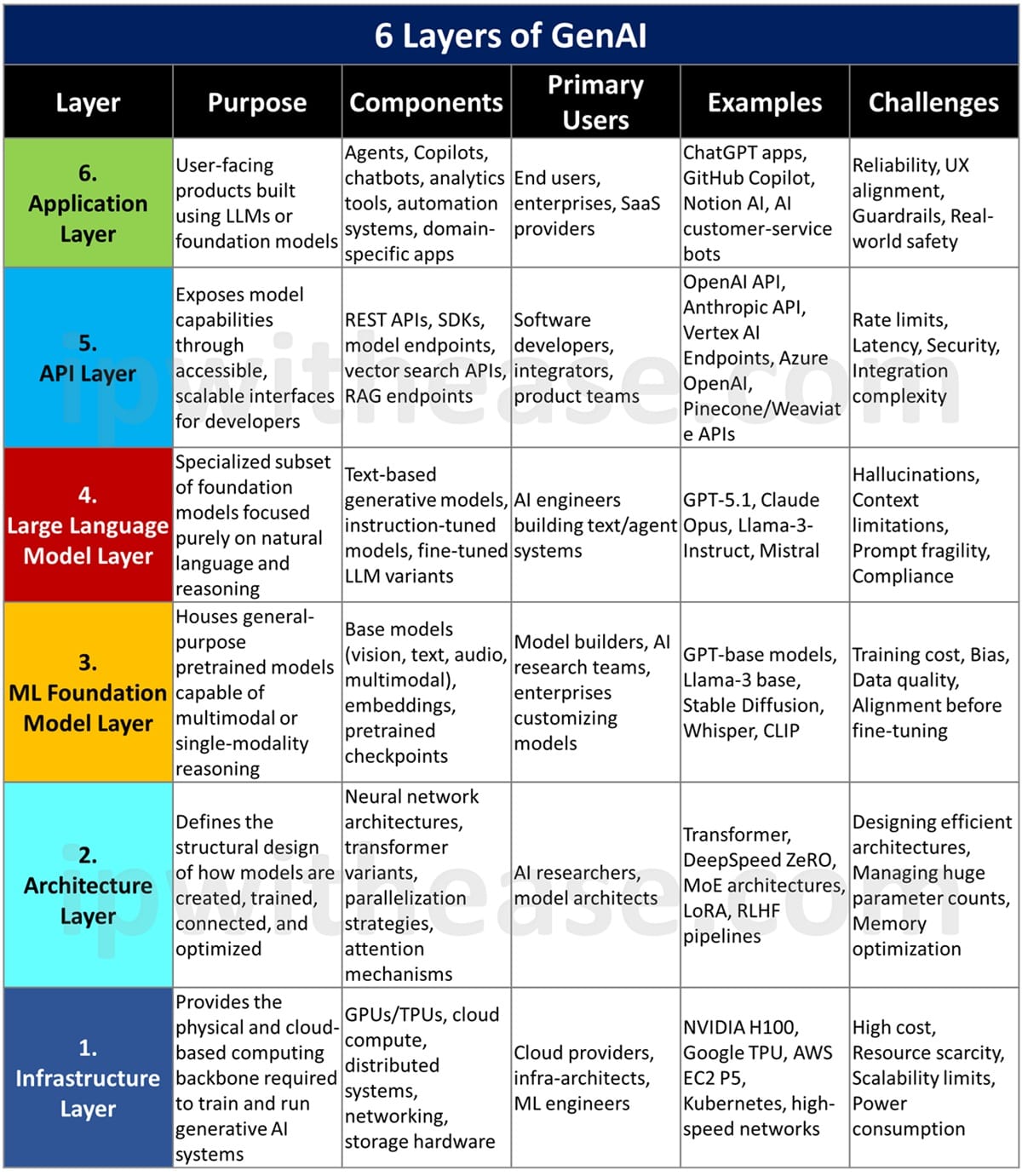 In this article we will learn more in detail about Generative AI or GenAI, its key characteristics and understand about six layers of Gen AI.