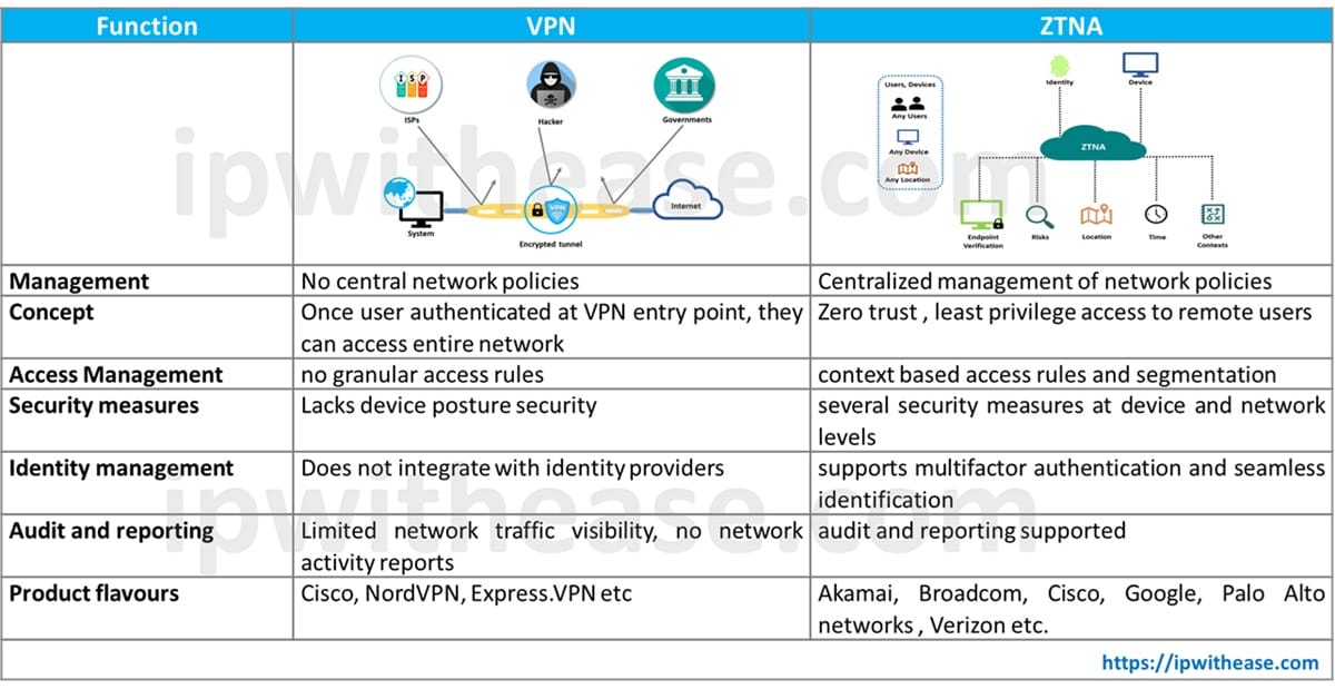 ConceptOnce user authenticated at VPN entry point, they can access entire networkZero trust , least privilege access to remote users